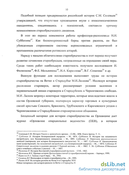 Подобной позиции придерживался российский историк СМ. Соловьев16 утверждавший, что отсутствие просвещения вкупе с апокалипсическими ожиданиями, соединившись с психологией, составили причину возникновения старообрядческого движения.