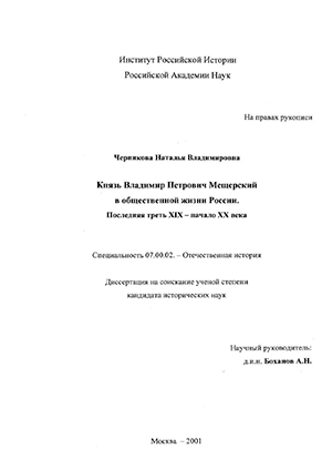 - Формирование и эволюция политического мировоззрения князя В.П. Мещерского
