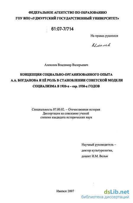 Это базовое положение тем более актуально для темы данной диссертации. И.В.Сталин реализовывал конкретику ленинского плана построения социализма, но реализовывал ее, предположительно подменив ленинские философские и методологические подходы к строительству социализма богдановскими философскими и методологическими подходами (концепцией СОО). И, в результате, коренные социальные преобразования сохраняют лишь видимость коренных, превращаются в «коренные» социальные преобразования. Поэтому, первая глава необходимо носит несколько философский уклон. Хотя и в ней анализ производится не абстрактно, а предметно, на совершенно конкретном материале. В следующих главах диссертации философско-методологические основания максимально конкретно вписываются в события и тенденции советской истории 1920-х-первой половины 1930-х годов.