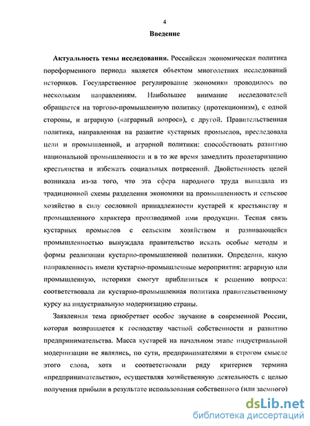 Актуальность темы исследования. Российская экономическая политика пореформенного периода является объектом многолетних исследований историков. Наибольшее внимание уделялось изучению правительственной торгово-промышленной и аграрной политики («аграрному вопросу»). Политика, направленная на развитие кустарных промыслов, исследовалась в значительно меньшей степени. До настоящего времени в историографии остается не решенным вопрос: в какой мере кустарно-промышленная политика соответствовала правительственному курсу на индустриальную модернизацию страны?