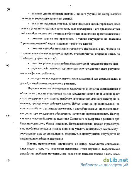 Научная новизна исследования заключается в попытке комплексного и объективного показа всех сторон жизни городского населения и усилий советского государства по спасению наиболее приоритетных для него категорий населения, прежде всего рабочего класса. Даётся ответ на принципиальный вопрос - за счёт чего выживало население, и способствовала ли продовольственная диктатура государства обеспечению населения продовольствием. Подчёркивается классовый характер политики Советского государства в решении проблем материального бытия населения. Исследовательский подход к рассмотрению проблемы позволил главное внимание уделить её ведущему компоненту -содержанию, а не организационной стороне, т. е. показу усилий государства по организации снабжения населения.