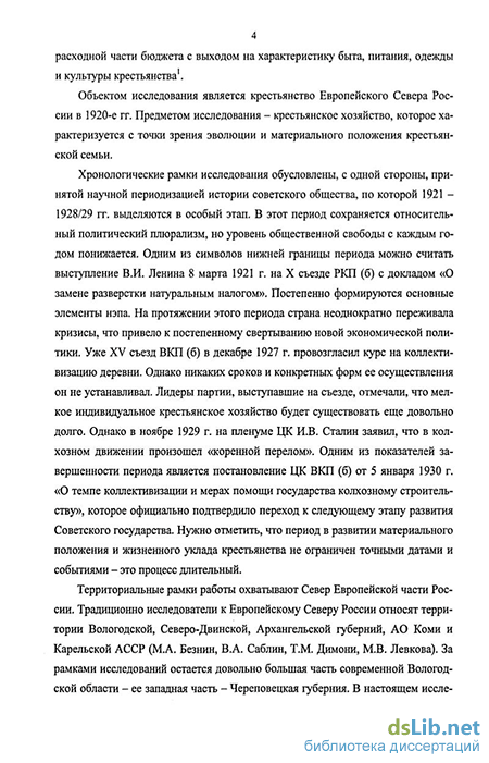 Хронологические рамки исследования обусловлены, с одной стороны, принятой научной периодизацией истории советского общества, по которой 1921 -1928/29 гг выделяются в особый этап В этот период сохраняется относительный политический плюрализм, но уровень общественной свободы с каждым годом понижается Одним из символов нижней границы периода можно считать выступление В И Ленина 8 марта 1921 г на X съезде РКП(б) с докладом «О замене разверстки натуральным налогом», которое вносило значительные изменения в принципы формирования материального положения двора На протяжении периода нэпа страна неоднократно переживала кризисы, что привело к постепенному свертыванию новой экономической политики Одним из показателей завершенности периода является постановление ЦК ВКП(б) от 5 января 1930 г «О темпе коллективизации и мерах помощи государства колхозному строительству», которое официально подтвердило переход к следующему этапу развития аграрной подсистемы страны, в том числе изменило политику формирования бюджета двора и другие характеристики материального положения крестьян