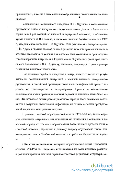 Объектом исследования выступает периодическая печать Тамбовской области 1953-1957 гг.