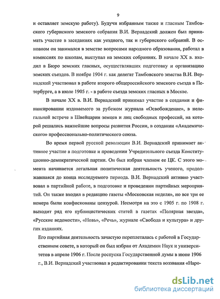 Глава II. Политическая деятельность В.И. Вернадского.