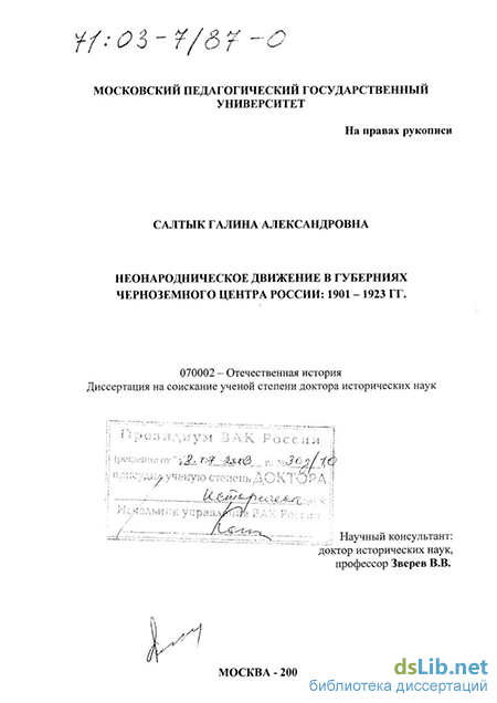 Салтык Галина Александровна. Неонародническое движение в губерниях Черноземного центра России, 1901 - 1923 гг. : диссертация ... доктора исторических наук : 07.00.02.- Москва, 2002.- 668 с.: ил. РГБ ОД, 71 03-7/87-0