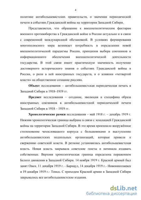 от отношений зарубежных государств с антибольшевистскими правительствами; в научный оборот был введён ряд не задействованных историками документов, которые позволили изучить ранее малоизвестные аспекты внешней политики антибольшевистских правительств Западной Сибири. Научно-практическая значимость работы видится в использовании её результатов при подготовке исследований по истории России в период Гражданской войны. Материалы диссертационной работы могут быть применены для разработки учебных курсов по истории внешней политики России, истории отечественной прессы.