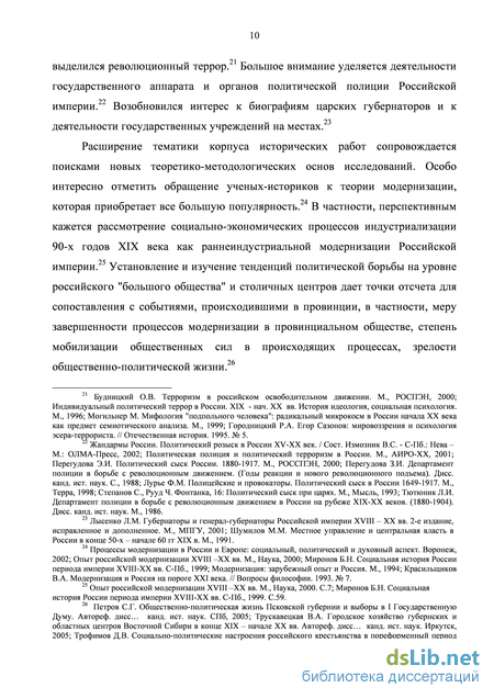 изученным. Были изданы материалы по биографиям орловских губернаторов, статья А.И.Еремина, посвященная их деятельности, и защищена диссертация А.С.Минакова, посвященная деятельности ведомства МВД в губернии. Последнему принадлежат также статьи, освещающие историю жандармских органов в Орловской губернии. Появилось достаточное количество популярных статей по истории деятельности Орловского земства. К сожалению, все они имеют очерковый, фрагментарный характер. С.В.Савенков проанализировал механизм влияния орловской прессы на население губернии. Таким образом, имеется серьезный задел в изучении общественно-политической жизни Орловской губернии в конце XIX - начале XX века, хотя эта тема не стала предметом специального научного исследования.