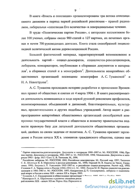В начале XXI в. издано значительное количество работ, посвященных деятельности политических партий разной ориентации. Среди них следует отметить коллективные монографии: «История политических партий России» под ред. А. И. Зевелева5, «Власть и оппозиция» под ред. В. В. Журавлева , «Политические партии России» под ред. В. В. Шелохаева .