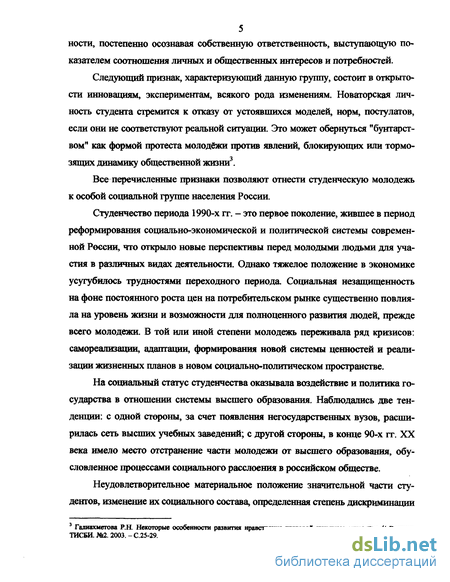 1 Соломина О.И. Студенчество: историко-социологический анализ // Сборник научных трудов. Серия "Гуманитарные науки". Вып. № 10//СевКавГТУ, Ставрополь» 2003. - С. 15.