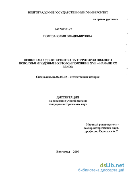 Научная новизна работы состоит в том, что это первый опыт описания пещерничества как исторического явления на территории Нижнего Поволжья и Подонья.