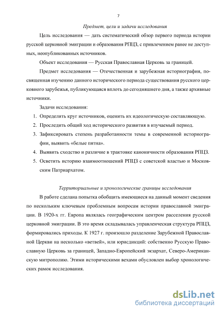 В связи с этим нами сформулирована цель исследования - дать систематический обзор первого периода истории русской церковной эмиграции и образования РПЦЗ, с привлечением ранее не доступных, неопубликованных источников.