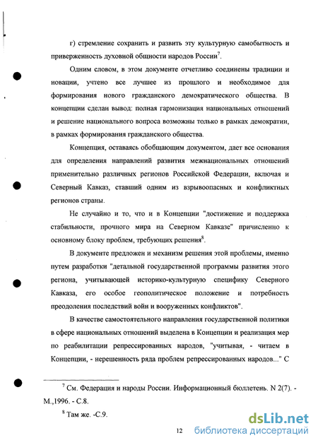 Такой подход в Концепции к проблемам межнациональных отношений выдвигает перед обществоведами задачу комплексного рассмотрения вопросов, связанных с основными направлениями государственной национальной политики Российской Федерации в целом, так и применительно к отдельным ее регионам, одним из которых и является Северный Кавказ, имеющего на своей территории 8 республик, 2 края и область. Все это определяет и актуальность изучаемой темы.