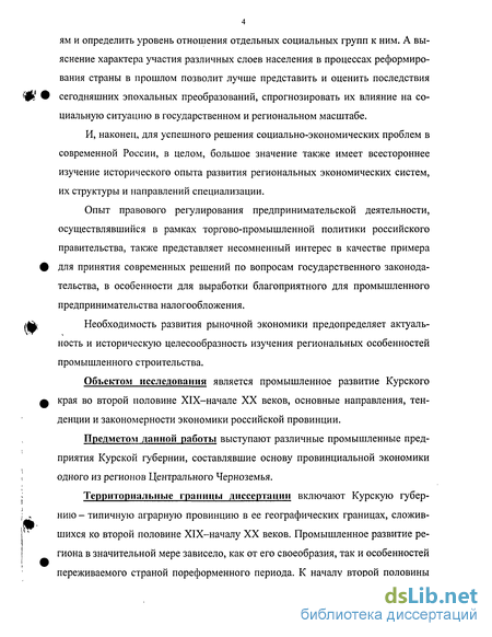 Объектом исследования является промышленное развитие Курского края во второй половине Х1Х-начале XX веков, основные направления, тенденции и закономерности экономики российской провинции.