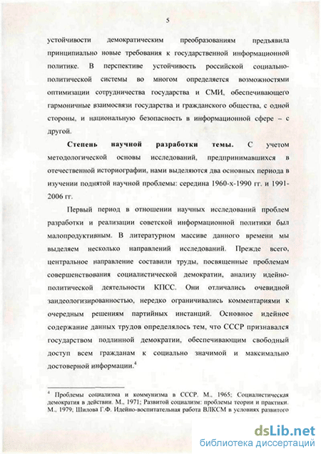 В целом, в последнее время российскими и зарубежными учеными было немало сделано для изучения информационной политики СССР в ЭПОХИ «застоя». Вместе с тем. анализ историографии позволяет сделать вывод о том, что проблема нуждается в дополнительном освещении.