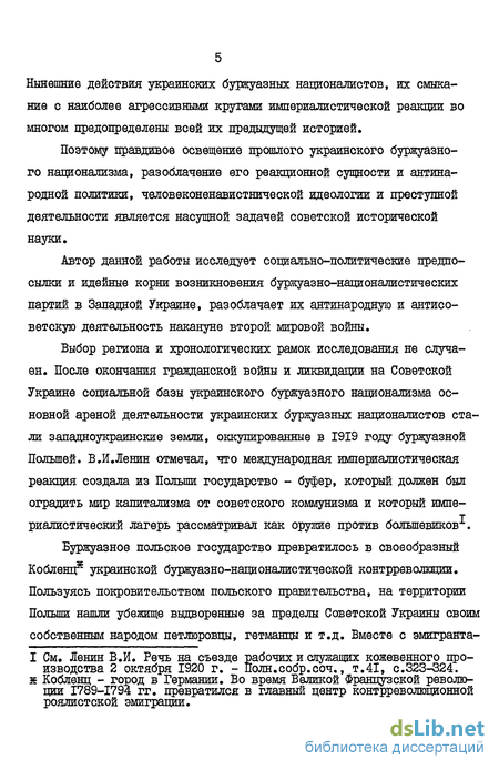 Выбор региона и хронологических рамок исследования не случаен. После окончания гражданской войны и ликвидации на Советской Украине социальной базы украинского буржуазного национализма основной ареной деятельности украинских буржуазных националистов стали западноукраинские земли, оккупированные в 1919 году буржуазной Польшей. В.И.Ленин отмечал, что международная империалистическая реакция создала из Польши государство - буфер, который должен был оградить мир капитализма от советского коммунизма и который империалистический лагерь рассматривал как оружие против большевиков1.