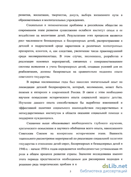 Проблема детской беспризорности и усилия, направленные на ее решение, рассматриваются как на конкретном историческом этапе - первое послевоенное десятилетие, так и в динамике — на протяжении XX века. Значительное количество работ посвящено рассмотрению опыта борьбы с детской беспризорностью и безнадзорностью в советском государстве в 1920-е годы, когда эта проблема была катастрофической5. Данные работы позволяют проследить процесс складывания нормативно-правовой базы в отношении детей, оставшихся без попечения родителей и формирования системы государственных попечительских учреждений.