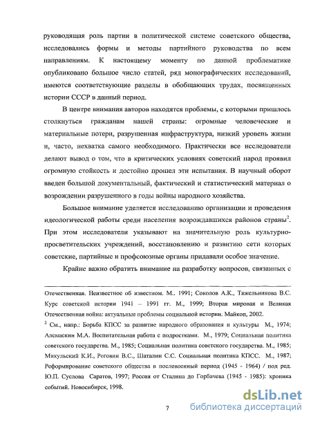 Степень изученности проблемы. Вопросы восстановления разрушенного народного хозяйства и социальные мероприятия советского правительства в годы Великой Отечественной войны и в первые послевоенные годы нашли широкое отражение в работах исследователей1. В них, как