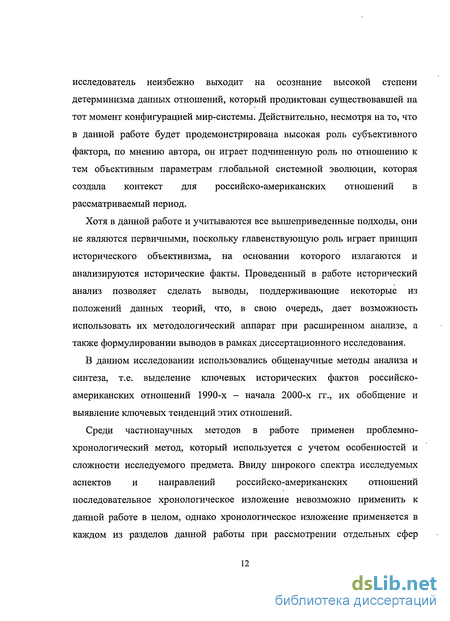 отношений (экономических, политических, общественных, в сфере безопасности и т.д.). В данной связи этот метод тесно связан с системно-структурным методом, который позволяет проанализировать всю палитру российско-американских отношений путем анализа ее структурных элементов и подсистем и помогает выделению общих тенденций и особенностей российско-американских отношений в рассматриваемый период в целом. Применяется также историко-генетический метод, который предполагает рассмотрение российско-американских отношений во всех их аспектах и сферах в тесной связке с анализом предшествующего периода советско-американских отношений.