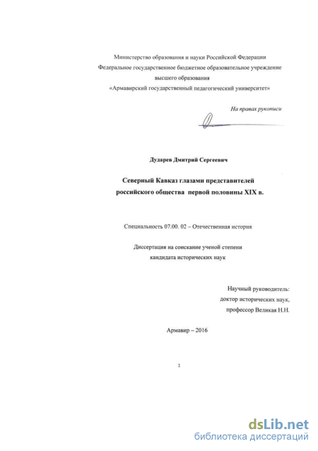 Цель работы состоит в разностороннем изучении взглядов различных слоев российского общества первой половины XIX века на проблемы интеграции Северного Кавказа и социокультурный облик его жителей.