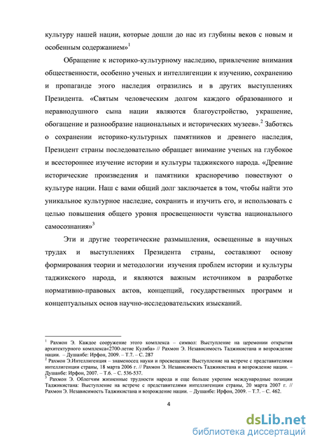 Значимость национальной и общечеловеческой культуры, духовного развития общества всегда находилась в центре внимания законадательной и исполнительной власти Республики Таджикистан. Президент Республики