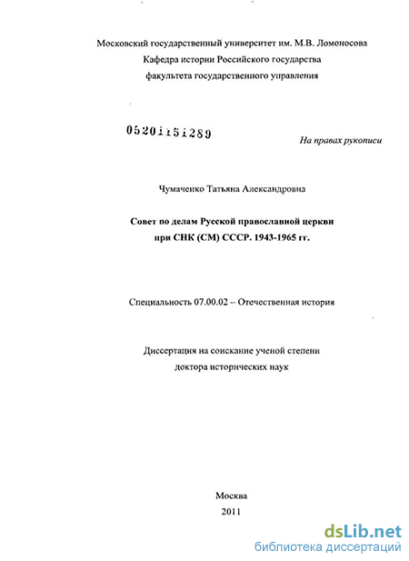 Особый интерес в этом отношении представляет обращение к опыту деятельности Совета по делам Русской православной церкви при Совете Народных Комиссаров (Совете Министров) СССР. В период с 1943-по 1965 гг. этот орган был ответственен за реализацию политики власти в отношении Русской православной церкви (далее - РПЦ) не только внутри страны, но и на международной арене. Объективный, основанный на репрезентативной документальной базе анализ взаимодействия этого государственного учреждения с различными институтами РПЦ может оказаться полезным и поучительным в современных условиях, возможно, поможет избежать прежних ошибок и просчетов, выстроить более совершенную модель взаимоотношений не только с Русской православной церковью, но и с другими религиозными организациями современной России. Это, в свою очередь позволит сохранить в нашем обществе атмосферу согласия, мира и сотрудничества, содействовать формированию гражданского общества в Российской Федерации.