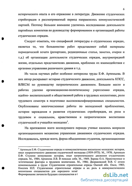 исторического опыта и его отражение в литературе. Движение студенческих стройотрядов в рассматриваемый период направлялось коммунистической партией. Поэтому большое внимание уделялось исследованию деятельности партийных комитетов по руководству формированием и организацией работы студенческих отрядов.