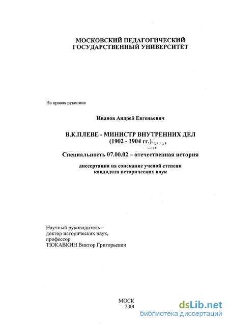 Таким образом, мы видим, что и в отечественной, и в зарубежной историографии в основном исследованы общие направления политики правительства в конце XIX - начале XX вв. В то же время по отношению к одному из творцов этой политики - В.К.Плеве применяется упрощенный подход. Он показан "узколобым полицейским", проводящим репрессивную политику по всем азимутам. Не исследованы ни политические взгляды Плеве, ни его роль в выработке внутриполитического курса, ни его детальное содержание. Все это представляет собой лакуну, которую предстоит заполнить.