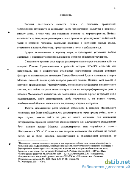 Работа, посвященная роли военной активности в истории Московского княжества, тем более необходима, что рассматривая ее через призму войны, то есть игры случая, можно выйти на ряд не менее значимых для понимания исторического процесса моментов: закономерности или случайности объединения Руси именно вокруг Москвы, закономерности или случайности самого объединения в XV в.1 Ответы на эти вопросы позволили бы избавить не только науку, но и образ истории, существующий в общественном сознании, от В пользу актуальности данного вопроса и для науки и для общества в целом может служить появление монографий и статей, посвященных как времени усиления Московского княжества и формирования единого русского государства в целом, так и вопросам объективности этого процесса, в частности. См. например: Горский А.А. Русские земли в XIII - XIV вв.: Пути политического развития. М. ИРИ РАН, 1996. - 128 с; Александров Д.Н. Полицентризм объединительных тенденций русских земель в XIII-XV вв. // Историческое обозрение: Отечественная история. М., 2000. Вып. 1. С. 14-18; Он же. Феодальная раздробленность на Руси. М. Экслибрис, 2001 - 479 с.