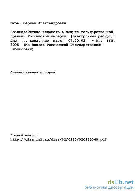 Глава 2. Согласование усилий местных органов управления в за щите государственной границы Российской империи 68 стр.