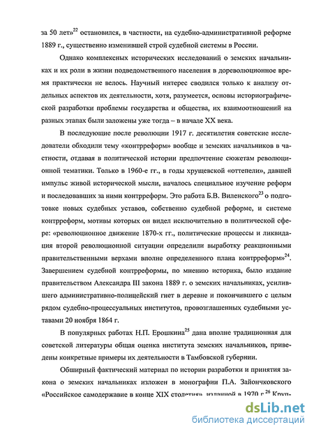 В популярных работах Н.П. Ерошкина25 дана вполне традиционная для советской литературы общая оценка института земских начальников, приведены конкретные примеры их деятельности в Тамбовской губернии.