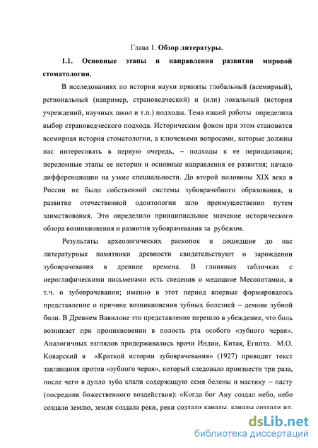 - отечественные и зарубежные источники (книжная и периодическая научная литература, диссертации) по истории стоматологии;