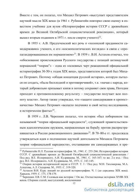 Отдельно следует сказать о фундаментальной работе Н.П. Барсукова, который, собрав большое количество материалов о жизни М.П. Погодина, написал его биографию в двадцати двух томах, выходивших в течение 1888– 1910 гг.2 В настоящем исследовании данный труд используется как обширное обширное собрание различных источников.