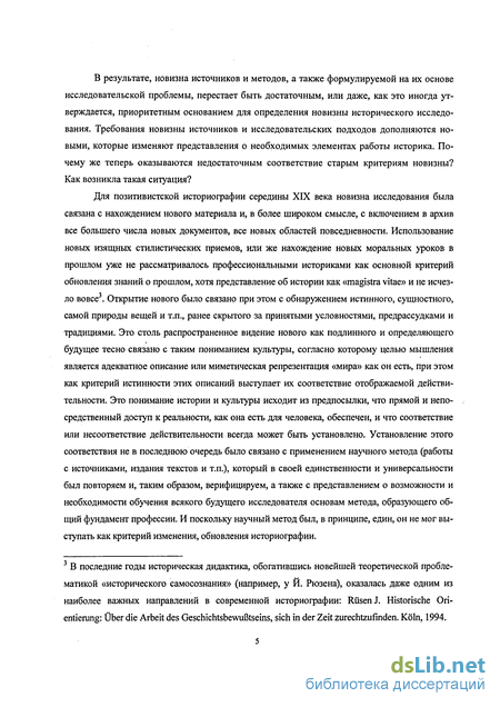 Для позитивистской историографии середины XIX века новизна исследования была связана с нахождением нового материала и, в более широком смысле, с включением в архив все большего числа новых документов, все новых областей повседневности. Использование новых изящных стилистических приемов, или же нахождение новых моральных уроков в прошлом уже не рассматривалось профессиональными историками как основной критерий обновления знаний о прошлом, хотя представление об истории как «magistra vitae» и не исчез-ло вовсе . Открытие нового было связано при этом с обнаружением истинного, сущностного, самой природы вещей и т.п., ранее скрытого за принятыми условностями, предрассудками и традициями. Это столь распространенное видение нового как подлинного и определяющего будущее тесно связано с таким пониманием культуры, согласно которому целью мышления является адекватное описание или миметическая репрезентация «мира» как он есть, при этом как критерий истинности этих описаний выступает их соответствие отображаемой действительности. Это понимание истории и культуры исходит из предпосылки, что прямой и непосредственный доступ к реальности, как она есть для человека, обеспечен, и что соответствие или несоответствие действительности всегда может быть установлено. Установление этого соответствия не в последнюю очередь было связано с применением научного метода (работы с источниками, издания текстов и т.п.), который в своей единственности и универсальности был повторяем и, таким образом, верифицируем, а также с представлением о возможности и необходимости обучения всякого будущего исследователя основам метода, образующего общий фундамент профессии. И поскольку научный метод был, в принципе, един, он не мог выступать как критерий изменения, обновления историографии.