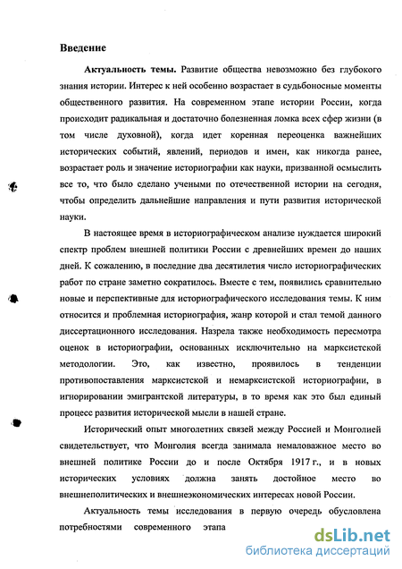 Разработанность темы. Отечественная историческая наука всегда уделяла большое внимание важнейшим проблемам российско-монгольских отношений. Историками поставлены и во многом решены кардинальные вопросы истории их взаимоотношений. Этим отношениям посвящена значительная по объему историческая литература. На ее страницах отражены ключевые моменты русско-монгольских отношений первой четверти XX века: причины спада русско-монгольской торговли, характер, содержание и движущие силы монгольской революции 1921 г., ее связи с последующими событиями и т.д. К настоящему времени по истории российско-монгольских отношений вышли тысячи книг, брошюр, статей, сборников научных тезисов и докладов, диссертаций. Фонд научных публикаций достиг таких размеров, которые и требуют историографического обобщения проведенных исследований. Историки предпринимали попытки такого анализа. Однако в этом направлении сделаны лишь первые шаги.