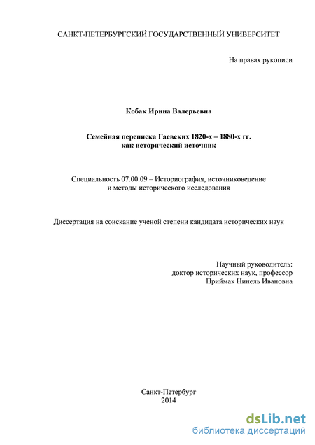 Глава II. Семья Гаевских и ее эпистолярное наследие 60