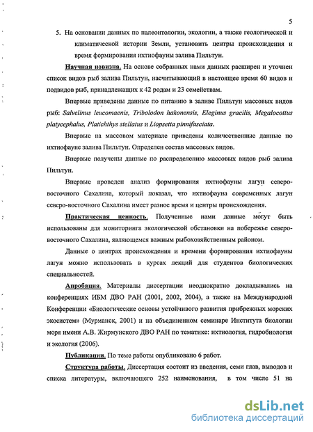 Апробация. Материалы диссертации неоднократно докладывались на конференциях ИБМ ДВО РАН (2001, 2002, 2004), а также на Международной Конференции «Биологические основы устойчивого развития прибрежных морских экосистем» (Мурманск, 2001) и на объединенном семинаре Института биологии моря имени А.В. Жирмунского ДВО РАН по тематике: ихтиология, гидробиология и экология (2006).