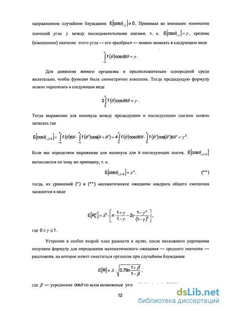 Вероятность, с которой рыба, находясь в углу ср, подойдет сети, определяется из следующих соображений. Если отождествлять движение рыбы с хаотически движущейся частицей, то вероятность рыбы коснуться сети есть то же самое, что и вероятность частицы достичь некоторой точки в пространстве, отстоящей на некотором расстоянии от места, в котором рыба (или частица) находились в момент начала движения t0 (рис. 6). Формула, по которой можно рассчитать эту вероятность, выглядит следующим образом: р(в)=ігН тЬ (1о) где Я — расстояние от точки, в которой рыба находилась в момент времени t0 , до сети, причем Л р, Т — время застоя сети (Розанов, 1971., «Вероятность и математическая статистика», 2003.). сеть