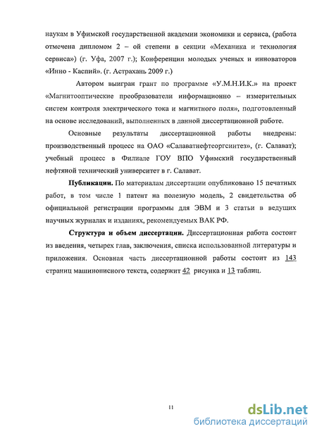 Цель диссертации: Создание и исследование информационно -измерительной системы с волоконно - оптическим преобразователем магнитного поля, обладающей улучшенными характеристиками и отвечающей требованиям искро-, взрывобезопасности.