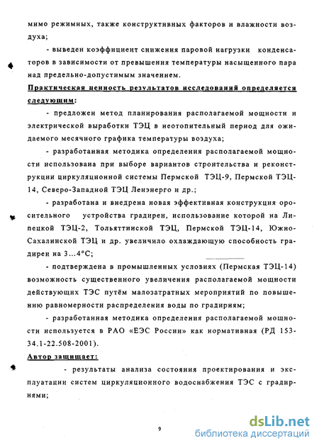- результаты анализа состояния проектирования и эксплуатации систем циркуляционного водоснабжения ТЭС с градирнями;