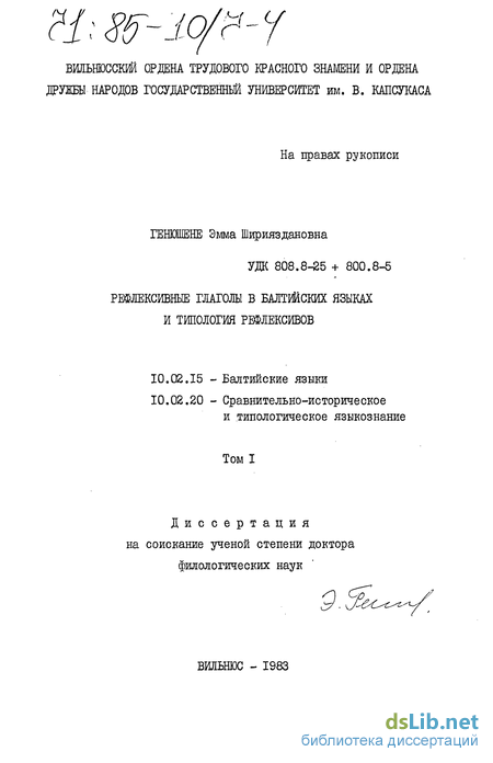 Актуальность темы. Рефлексивы являются одной из традиционных и излюбленных тем в исследовании многих языков: им всегда уделялось исключительное внимание, но особенно пристальный интерес они вызвали в последнее время (см., в частности, ВаЪ-соск 1970; StOtzel 1970; Leddusire 1972; Donaldson 1973; Stimm 1973; Cantrall 1974; Garca 1975; Cranmer 1976; Dusko-va 1976; Langacker 1976; Napoli 1976; Kwapisch 1978; Westfal 1979; Krohn 1980; SK 1981). Изучение балтийских и английских РГ актуально по двум основным причинам: во-первых, по сравнению с РГ в русском, болгарском, немецком, испанском и некоторых других языках они гораздо менее изучены - в этой связи показательно следующее высказывание о литовских РГ: "(...) в настоящее время еще нельзя сказать, что уже четко определены функции возвратного аффикса и его место среди других слово-и формообразующих аффиксов" (Паулаускене 1979:13); во-вторых, достижения последних лет в области исследования синтаксиса и семантики глагола и типологического изучения языковых подсистем предъявляют сегодня новые повышенные требования к описанию языковых явлений, одновременно создавая необходимую теоретическую базу для изучения РГ в соответствии с этими требованиями и для переосмысления и обобщения уже накопленных данных. Поэтому представляется своевременным теоретическое обоснование анализа РГ и создание эксплицитной методики, которая позволяла бы получать сопоставимые описания РГ различных языков. В свете современного интереса к типологии и успехов типологического изучения РГ и - шире - диатез и залогов (см.: КЗ 1970; ТПК 1974; ДЗ 1975; ІШТ 1977; Nedjalkov 1980; ЗК 1981) актуально продолжение этой работы как по линии привлечения нового эмпирического материала, так и по линии расширения диапазона аспектов типологического изучения РГ. На современном этапе развития лингвистики актуальны типологические исследования любых языковых подсистем (ср.: Живов, Успенский 1981:3-28), поскольку типология, при всем интересе к ней в наши дни, находится еще в процессе становления, характеризующемся преобладанием работ дедуктивного характера с недостаточным эмпирическим обоснованием и явным недостатком работ аналитическо-индуктивного характера, необходимых для создания обоснованной типологии языков.