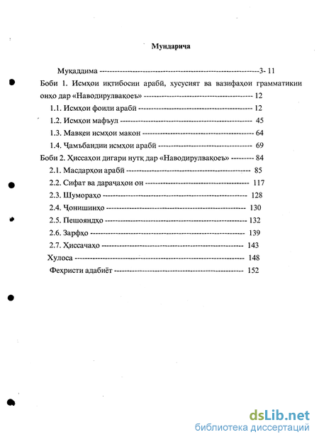 Боби 1. Исмхри иктибосии арабй, хусусият ва вазифах,ои грамматикии онхр дар «Наводирулвак,оеъ» 12