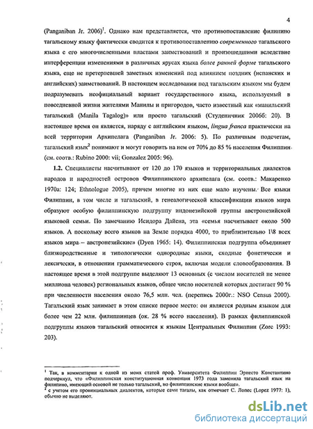 ряют представление о возможностях тагальской морфологии. Анализ интерференции как влияния пластов ассимилированных заимствований на ТЯ может способствовать пониманию тенденций развития современного языка и причин ряда изменений в различных его ярусах.
