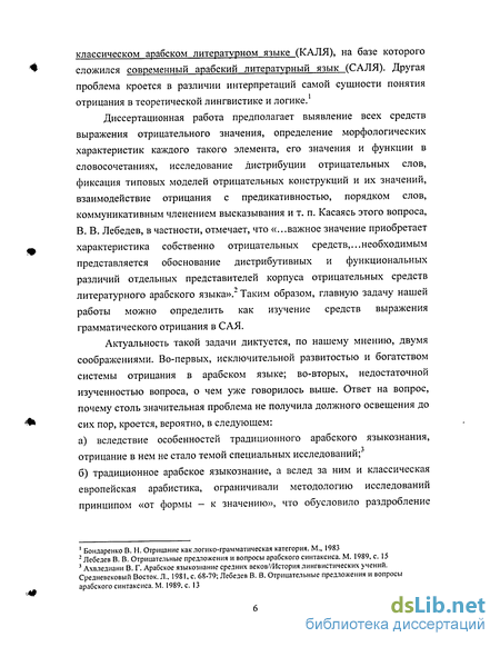 классическом арабском литературном языке (КАЛЯ), на базе которого сложился современный арабский литературный язык (САЛЯ). Другая проблема кроется в различии интерпретаций самой сущности понятия отрицания в теоретической лингвистике и логике.1