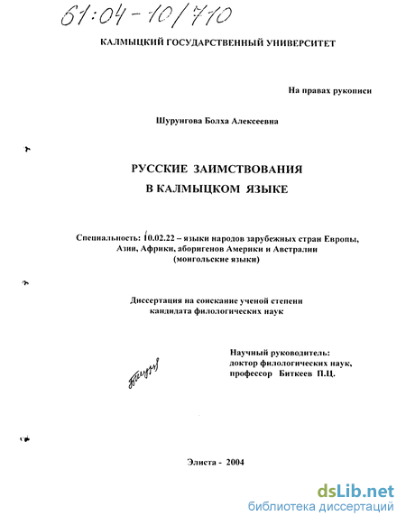 сопоставлению различных частей речи и грамматических категорий калмыцкого и русского языков. Особенно активно в этом плане работали Н.У. Очирова [1976; 1978; 1981; 1984; 1985; 1987; 1989; 1995; 2002], Д.А. Сусеева [1993; 1994], Р.П. Харчевникова и М.К. Кульгина [1994], В.Н. Мушаев [1999]. В то же время, как уже говорилось выше, до сих пор нет работы, обобщающей все эти сопоставительные исследования и дающей всесторонний анализ русским заимствованным элементам в калмыцком языке на разных уровнях его системы. Эта цель предопределила решение следующих конкретных задач: