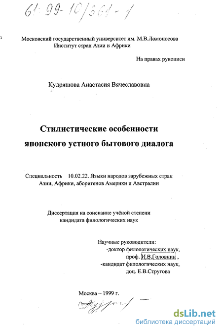 2.1 Дифференциальные признаки японского бытового диалога стр. 79