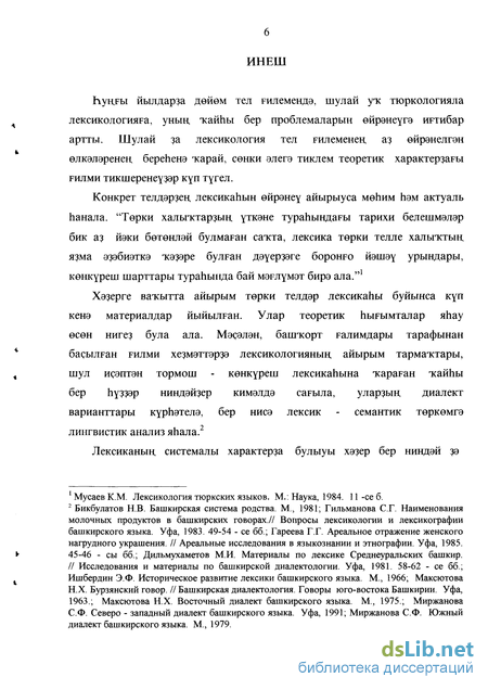 Тикшеренеузен, методологик Ьэм теоретик нигезе итеп хэ?ерге лингвистиканын, тсазаныштары, галим-тюркологтарзын, лексикология проблемаларына арналган фэнни хезмэттэре алынды. Тикшеренеу барышында В.В. Виноградовтьщ, Н.К. Дмитриевтын,, К.М. Мусаевтьщ,