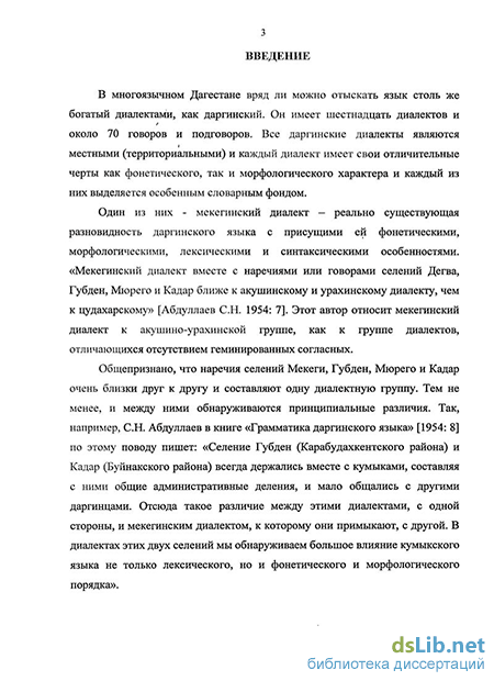 литературного даргинского языка и некоторых его диалектов, что позволило более точно определить как общетеоретические, так и специфические особенности мекегинского диалекта даргинского языка.