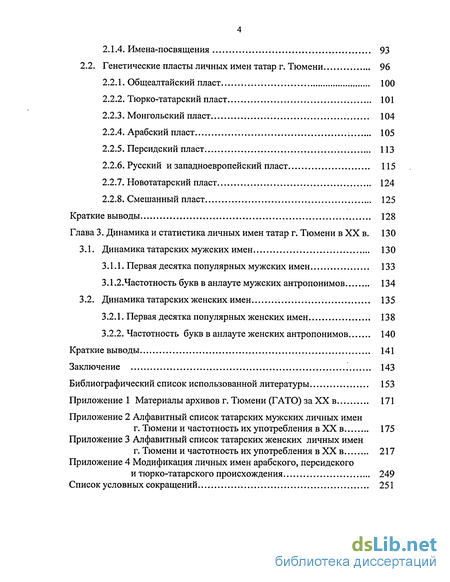 Глава 3. Динамика и статистика личных имен татар г. Тюмени в XX в. 130
