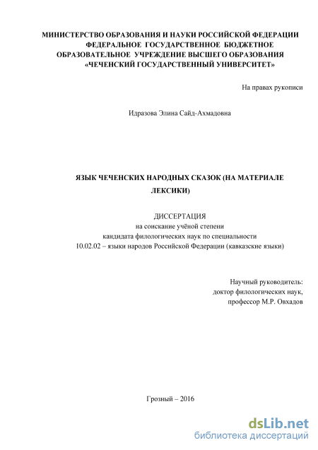 употребляемых в языке чеченских народных сказок, выявит различные признаки, определяющие специфику чеченского языка, в том числе дописьменного периода его развития.