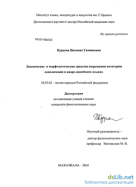 комплексному исследованию разноуровневых языковых средств (лексических и грамматических), выражающих семантику локализации в аваро-андийских языках. В научных трудах дагестановедов затронуты лишь частные вопросы выражения пространственной семантики в исследуемых языках.